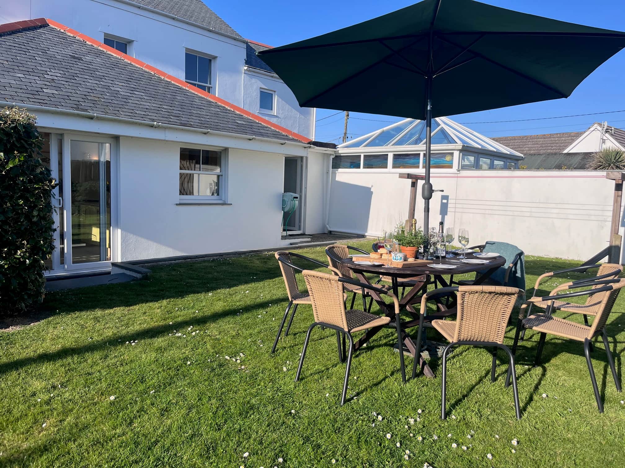 🚿 Beach wet room with 2 showers + WC | Downstairs WC | 🌿 Enclosed garden with outdoor dining |