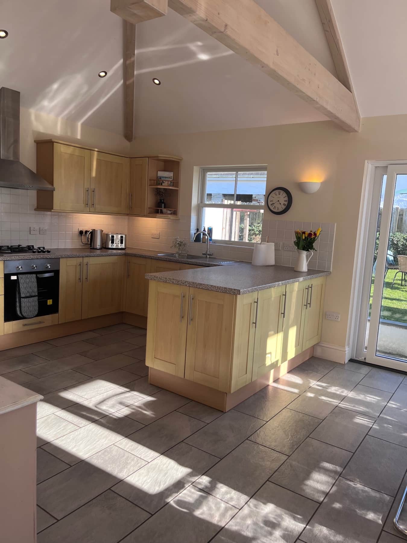 🍽️ Spacious family kitchen with underfloor heating | 🧺 Laundry room | 📺 Netflix + games cupboard |